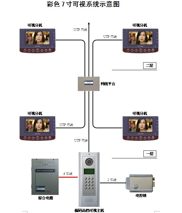 一般采用总线制传输,数字编码方式控制,只要访客按下住户的代码,对应的户主拿下话机就可以与访客通话,以决定是否需要打开防盗安全门。